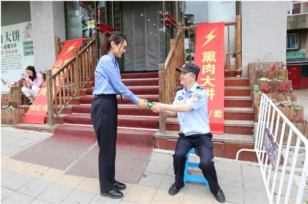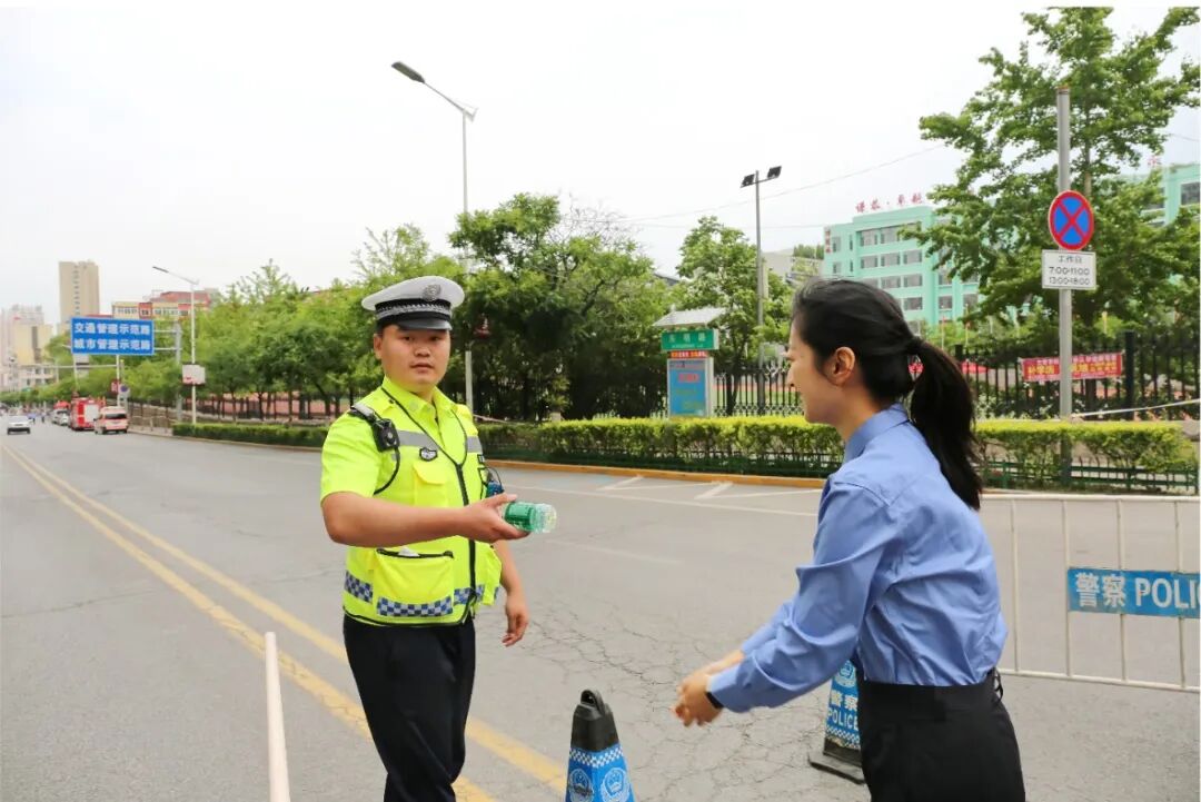 先锋队队员还为考场之外、烈日之下坚守的公安民警、应急消防和医疗保障等考务保障人员送去矿泉水、凳子等物品。