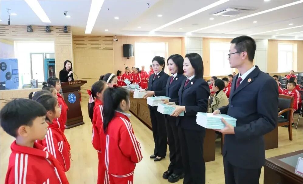 宣讲活动结束后,于洋检察长和检察官们一起为同学们送上了法律书籍,并鼓励同学们做网络文明的实践者、传播者和维护者。
